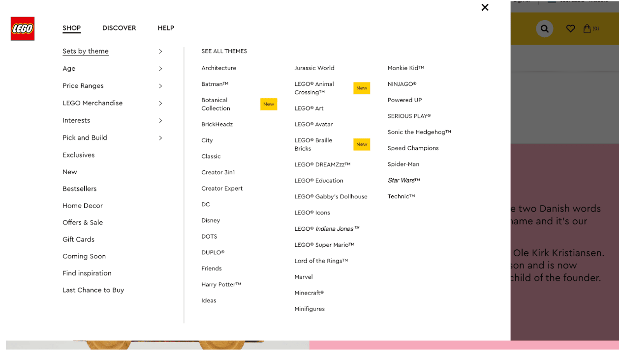 To combat that, LEGO organizes their products by ‘chunking’ similar sets together based on specific themes..